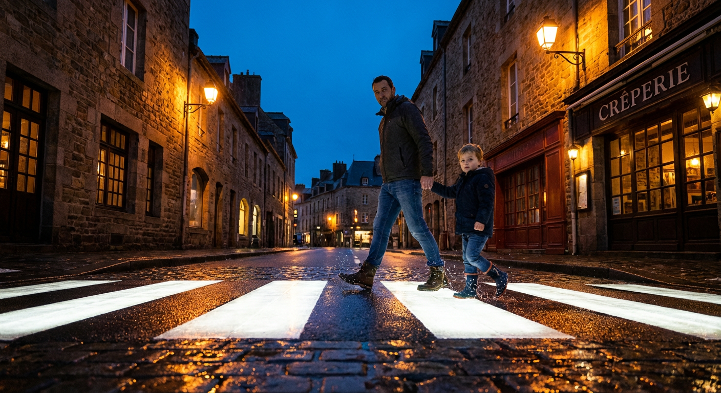Une fois le piéton passé, le dispositif revient automatiquement à une luminosité réduite, garantissant un repère visuel discret tout en maîtrisant la polution lumineuse et consommation énergétique.